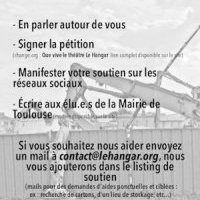 LE HANGAR EN LUTTE Pour continuer à exister nous avons grandement besoin de votre soutien. Vous pouvez : Parler de notre situation (...) Lire la suite..