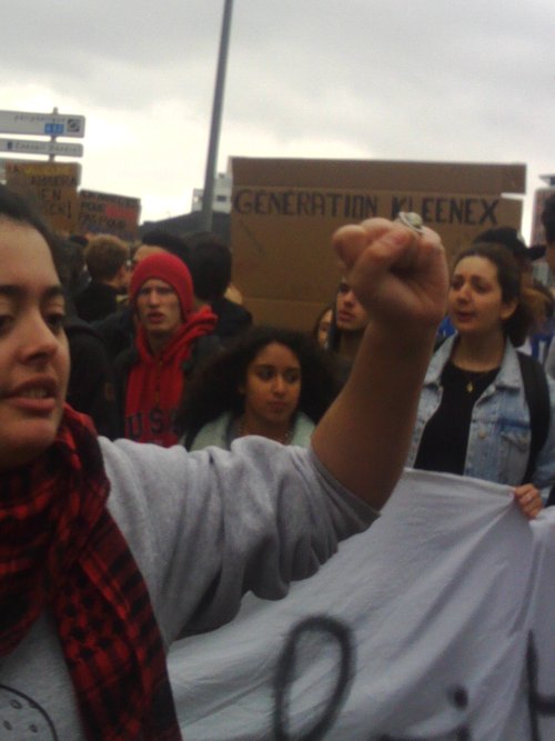Lycéennes et Lycéens en lutte contre la loi "trrrravail". Pierrine, Romain et Léa, 15, 16 et 17 ans sont en 2de et 1ère à Déodat de Severac et St Sernin.