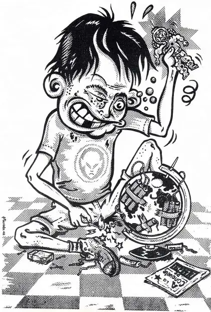 1 : Zven deviendra par la suite éditeur du graphzine Smittekilde ; il revendique l’influence cruciale de Nicomix dans son parcours artistique, notamment son goût pour la technique de la sérigraphie et sa persévérance dans un style singulier et personnel : « grâce à Nico j’ai évité le lavage de cerveau de l’art conceptuel minimaliste ironique et chiant, omniprésent dans le milieu des beaux-arts ».