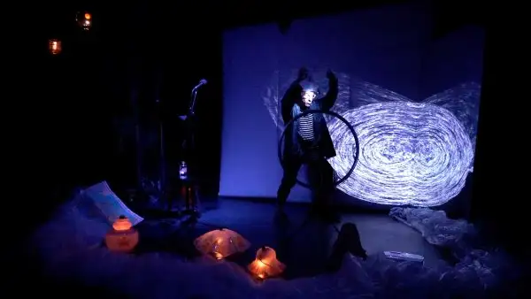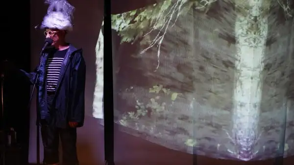 Rabelais 2.0 - Le Quart Livre est un récital poétique et sonore d’après l’œuvre de François Rabelais pour récitant, dispositif live électroacoustique et vidéo, création 2023 .