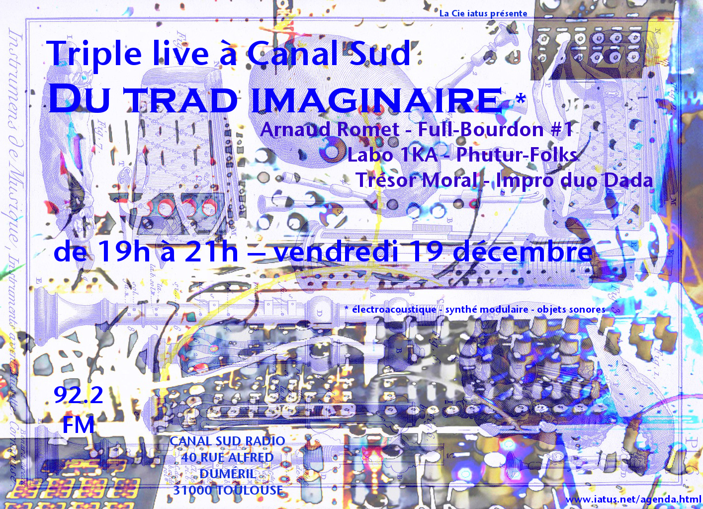 à Canal Sud en public au local de la radio, 40 rue Alfred Duméril 31400 Toulouse