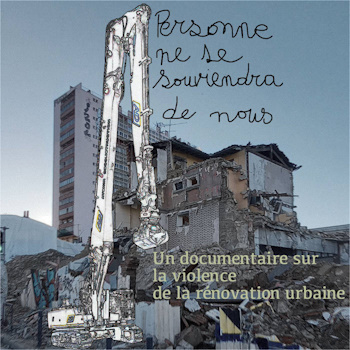 Un documentaire sonore sur la violence de la « rénovation urbaine », dans lequel nous tendons l’oreille à trois histoires qui racontent ce que la disparition de son logement et de son quartier coûte à l’existence. Ces récits sont mis en perspective avec l’histoire de Toulouse et de son aménagement où la ruine, la destruction et la brutalité, loin d’être marginales, sont des éléments structurants.