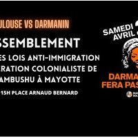 publié le 11 mai 2023 par / Temps de lecture estimé : 1 mn |L’assemblée générale "Toulouse VS Darmanin" appelle à un rassemblement samedi 29 avril contre la loi Darmanin et l’opération raciste et colonialiste planifiée à Mayotte et contre toutes les propositions de lois anti-immigration de ce gouvernement !
