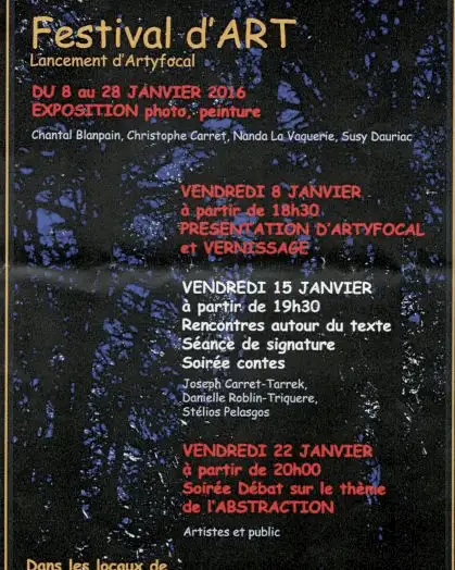 Vernissage d’une expo de l’association artyfocal le 8 janvier 18h30