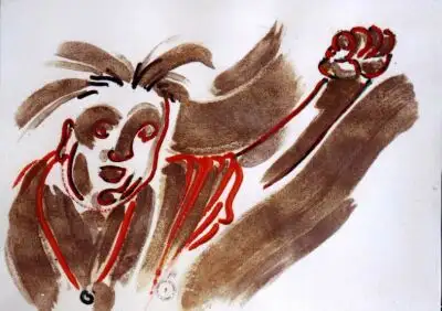 Bernard lespinasse utilise pour ses compositions tout ce qui l’entoure, le sable de la carrière de Masclat, le marc et les vieux jus de café , d’autres éléments plus ou moins secrets et quelques traits de couleur qui forcent l’expression.