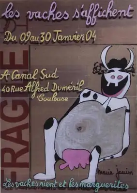 Marie nous a quittée vendredi 29 janvier 2010 à l’hôpital Purpan. Pour ceux et celles qui l’ont connue ou croisée dans des manifs ou des expos, c’est elle qui dessinait ou peignait entre autre, des vaches... Marie JOUIN a exposé ses œuvres à canalsud à plusieurs reprises.