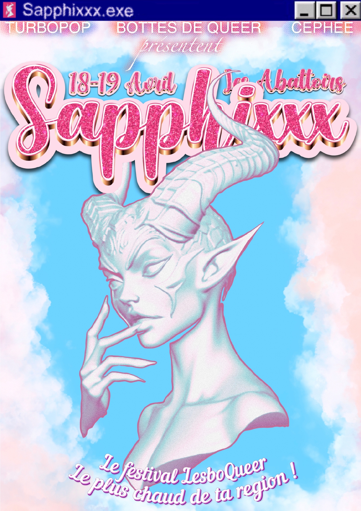 Le 1er festival Lesbo-Queer "le plus chaud de la région", SAPPHIXXX est une création issue de 3 entités : le collectif d’art BOTTES DE QUEER associé à TURBOPOP, qui développe des événements queer festifs et inclusifs et à CÉPHÉE qui œuvre à la création de marchés dédiés aux créateur·ices précaires.