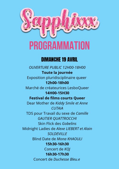 1er Festival SAPPHIXXX, Lesbo-Queer & artistique - sam 18 et dim 19 avril à Toulouse