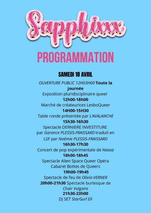 LE PROGRAMME DE SAPPHIXXX SAMEDI 18 AVRIL