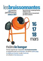 publié le 17 mars 2017 par / Temps de lecture estimé : 1 mn | Un commentaire ?Frédérique Soumagne , née en 1970, vit et travaille à Bordeaux, s’intéresse d’abord à la langue (et à toutes), cherche à l’ouvrir pour en découvrir les mécanismes – mathématique de la langue, physique de la langue, chimie, et mouvements, et musique – la langue comme animal et comme machine. Tire de cette recherche des textes à lire en silence (revues, livres) et d’autres, écrits au plus près de la parole, destinés à être mis en voix et en corps, qu’elle donne régulièrement Lire la suite..
