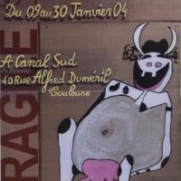 En janvier 2004, ce sont des vaches blanches et noires qui s’adressaient au public au travers d’attitudes ou de textes. En février 2008, elle présente des peintures, collages et dessins qui se mêlent dans une installation pour nous dire toute sa révolte et la nécessité de faire quelque chose pour changer ce monde.