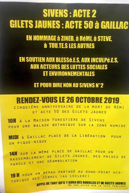 APPEL SUR SIVENS SAMEDI 26 OCTOBRE